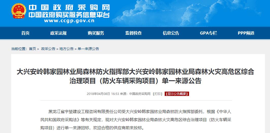 據(jù)林業(yè)局領導介紹,該批車輛到達林業(yè)局后下發(fā)至林業(yè)局防火辦,主要用于森林滅火人員物資輸送,后勤保障救援,防火器材運輸?shù)戎饕ぷ,因此對車輛的質量要求極其嚴格,對我們公司提供的防火車輛給出高度評價,此批車輛為韓家園林業(yè)局經(jīng)過層層篩選,反復招投標后才確定的車型,公司接到中標通知書時也是很激動,能接上這樣的森林防火設備運輸車,也對我們的服務,質量提出更高的要求。該局領導介紹由于林區(qū)防火公路多為簡易道路,對車輛通過性要求很高,我公司提供的四驅越野卡車能夠滿足他們的需求。下圖為招標公示。