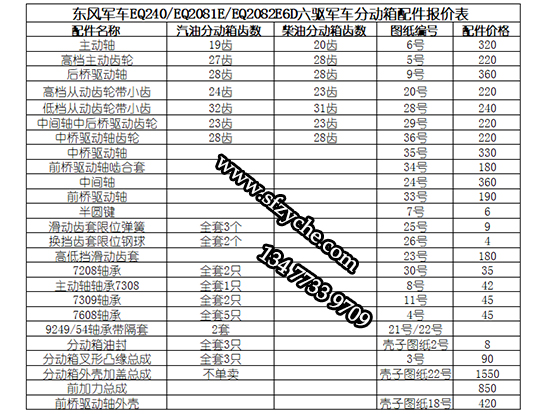 東風軍車EQ240/EQ2081E/EQ2082E6D六驅(qū)軍車分動箱常規(guī)易損件清單價格表: