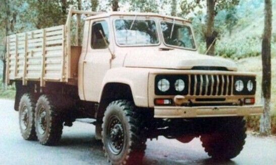 25Y與我們熟悉的EQ240性能基本一致,在早期的試制階段,外形有不少區(qū)別,散熱器水箱罩造型不同,前保險(xiǎn)杠設(shè)置絞盤,并預(yù)留蹬車孔。