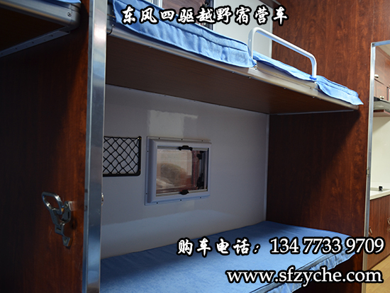 東風(fēng)大型四驅(qū)越野房車滿足更多路況復(fù)雜環(huán)境使用,廂體內(nèi)裝有豪華折疊床、液晶電視、儲(chǔ)物柜、應(yīng)急燈、頂燈、頂置空調(diào)、床墊、被褥、燃油加熱器、頂護(hù)欄、爬梯、隱藏抽拉梯、專用房車門、中空玻璃、戶外燈。由保溫廂體、空氣調(diào)節(jié)系統(tǒng)、宿營(yíng)設(shè)施、影音系統(tǒng)、電氣系統(tǒng)、通風(fēng)換氣系統(tǒng)、洗漱和衛(wèi)生設(shè)施。整個(gè)廂體分為三個(gè)部分,住宿區(qū)、洗漱區(qū)、餐飲區(qū)。住宿區(qū)包括四個(gè)上下鋪,床頭燈,液晶電視,空調(diào)等。洗浴區(qū)包括臉臺(tái),衛(wèi)生間,熱水器等。餐飲區(qū)包括無煙灶臺(tái),可活動(dòng)餐桌,洗菜盆等。也可以根據(jù)用戶的需要設(shè)計(jì),可增加會(huì)議室,辦公區(qū)等。東風(fēng)大型四驅(qū)越野房車內(nèi)飾圖片: