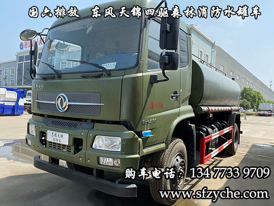 東風(fēng)天錦四驅(qū)森林消防灑水車(chē)_國(guó)六排放潤(rùn)知星牌SCS5164GPSDFV6型四驅(qū)越野綠化噴灑車(chē)采用DFV2163GP6DJ型國(guó)六排放東風(fēng)天錦四驅(qū)越野底盤(pán),東風(fēng)天錦D530一排半駕駛室,4×4驅(qū)動(dòng),康明斯B6.2NS6B210國(guó)六發(fā)動(dòng)機(jī)210馬力,最大扭矩850N.m/1100-1700rpm,排量6.2L、韶齒手動(dòng)六檔變速箱,東風(fēng)德納車(chē)橋,前驅(qū)動(dòng)橋4.5噸,后橋10噸,10.00R20輪胎,軸距4500mm/4700mm,電動(dòng)玻璃,方向助力,斷氣剎,ABS,大燈自動(dòng)調(diào)節(jié),自動(dòng)調(diào)整臂,選裝原廠空調(diào)。罐體采用優(yōu)質(zhì)碳鋼Q235板材,板材厚度4mm,罐體容積8.7立方,安裝夾心取力器,后置泵箱,消防栓接口左右各一個(gè),消防炮采用PS30-50D消防水炮,流量40L/S/1.0MPa 水射程:≥50m,消防泵采用常壓消防泵型號(hào):CB10/40車(chē)用消防泵,流量:40L/s,壓力:1.0MPa,駕駛室頂部安裝長(zhǎng)條警燈帶喊話器,兩側(cè)噴涂白色森林消防字樣。