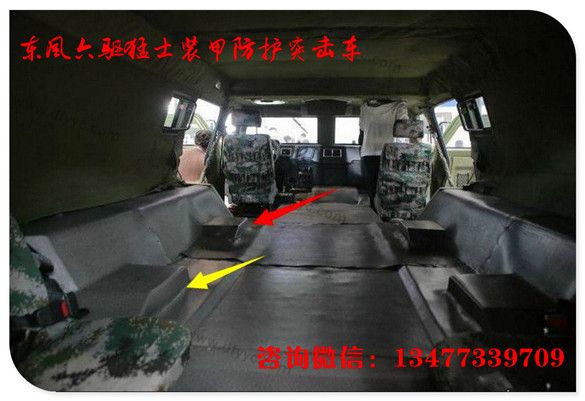 上圖是6輪驅動長軸2代猛士裝甲車駕駛艙特寫。較1代猛士裝甲車有24處改進。諸如:粗握把3幅面方向盤可以減緩駕駛員操作時的疲勞程度(1代猛士的方向盤為細握把,駕駛時間超過2小時手掌酸痛)。全新的組合儀表,將發(fā)動機轉速、車速、發(fā)動機水溫、機油壓力、蓄電池電壓顯示的更加清晰。各個功能按鍵全部改為由上至下按壓式大尺寸開關。而輪胎壓力調節(jié)開關從儀表臺左下側轉移至右側(此處改進有助于駕駛員快速操控)。