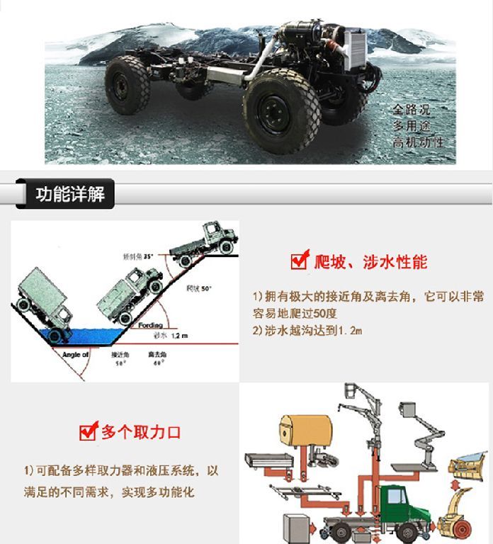 簡介:東風(fēng)EQ2070FFZ4D型高性能越野特種車是一款技術(shù)先進、性能卓越、多功能、全天候的特種越野車,也是中國上唯一在沙漠、山區(qū)等極其艱苦環(huán)境條件下顯示高技術(shù)、高性能和高可靠性的軍用和特殊民用汽車。該產(chǎn)品,無論是越高山峻嶺、穿林海雪原,還是闖茫茫沙漠、涉沼澤泥潭,無論是用作防彈運兵、戰(zhàn)地救護,還是用作森林消防和野外勘探,它都能以超一流的越野通過能力、高涉水性,可靠耐久性和優(yōu)異的上裝適用能力,令世人嘆為觀止,當之無愧地成為挑戰(zhàn)越野極限的明星。如需了解更多EQ2070FZ4D型越野四驅(qū)汽車的詳細參數(shù)和配置請立即撥打銷售熱線:13477339709 李經(jīng)理 0722-7053060 業(yè)務(wù)QQ:530233927,微信號:13477339709 ,東風(fēng)越野卡車網(wǎng)址:m.yuntuokeji.com