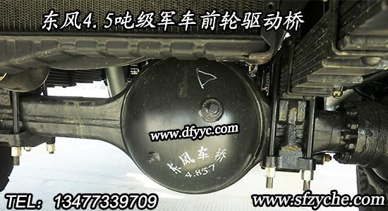 東風(fēng)六驅(qū)平頭軍車前橋采用東風(fēng)德納4.5噸級(jí)前置驅(qū)動(dòng)車橋,這種采用三肖式等速萬(wàn)向節(jié)式的軍用驅(qū)動(dòng)前橋主要用于以下車型:早期的東風(fēng)3.5噸級(jí)六驅(qū)尖頭軍車EQ245、EQ2100E、EQ2100E6D等三種尖頭六驅(qū)軍車,后期主要應(yīng)用在東風(fēng)平頭軍車:EQ2102、EQ2162、DFS5160TSML型六驅(qū)軍車上。